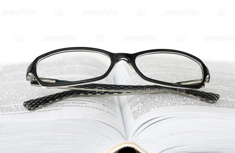 Очки, лежащие на открытой книге