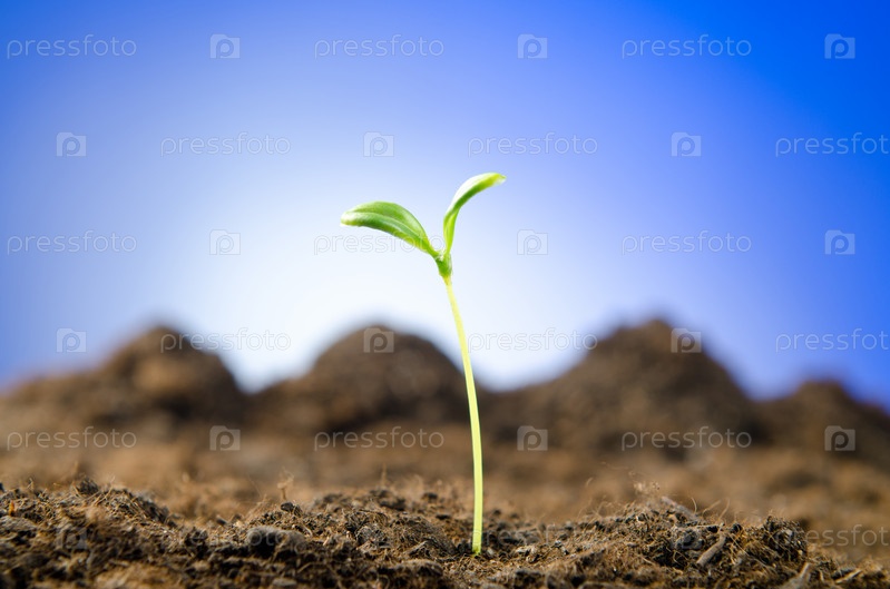 Зеленый саженец в земле