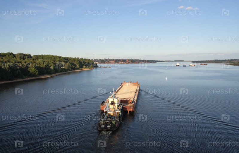 Баржа плывет в порт