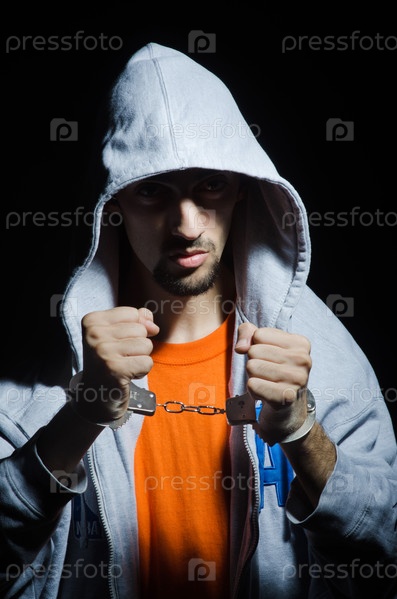 Молодой уголовник в наручниках