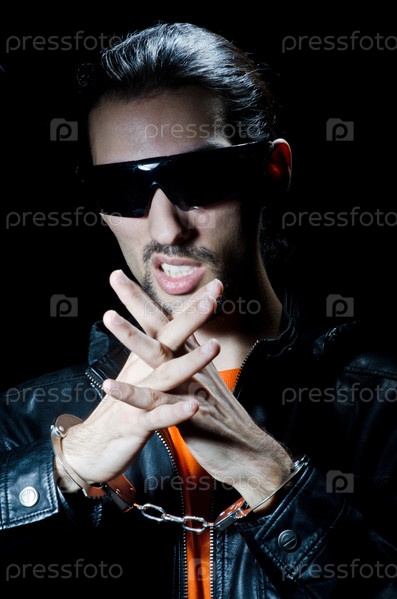 Молодой уголовник в наручниках