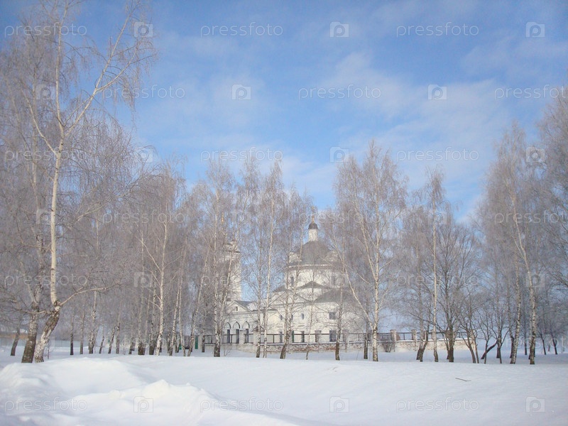 Белая церковь среди берез
