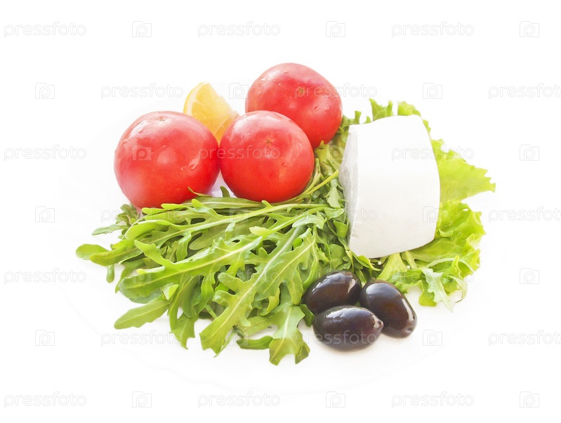 Овощи и сыр на белом фоне