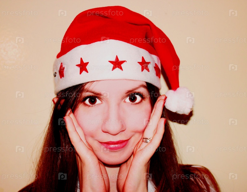 Красивая молодая женщина в новогодней шапке