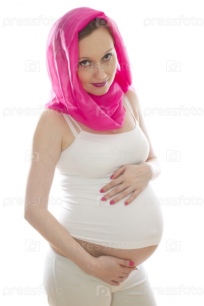 Красивая беременная женщина в розовом платке