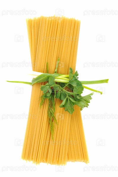 Спагетти перевязаны зеленым луком