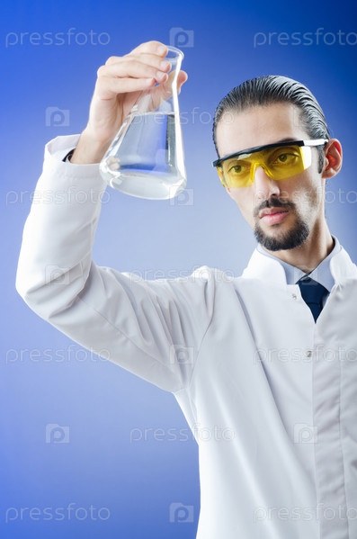 Молодой химик работает в лаборатории