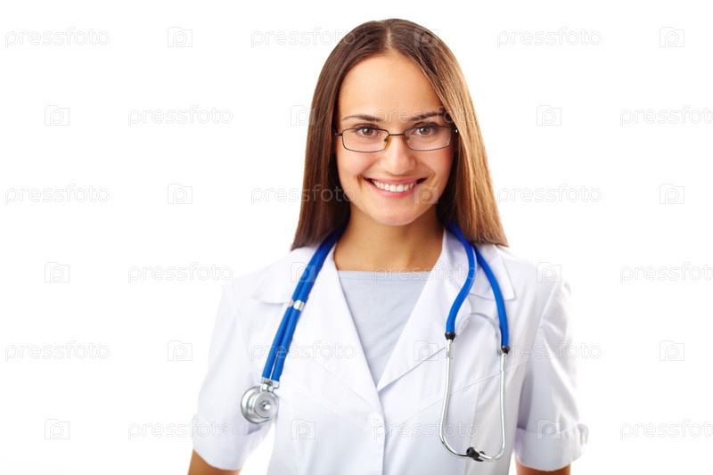 Женщина-доктор на белом