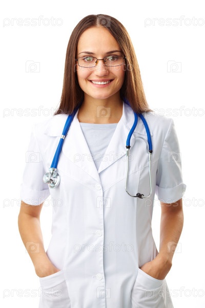 Молодой врач на белом