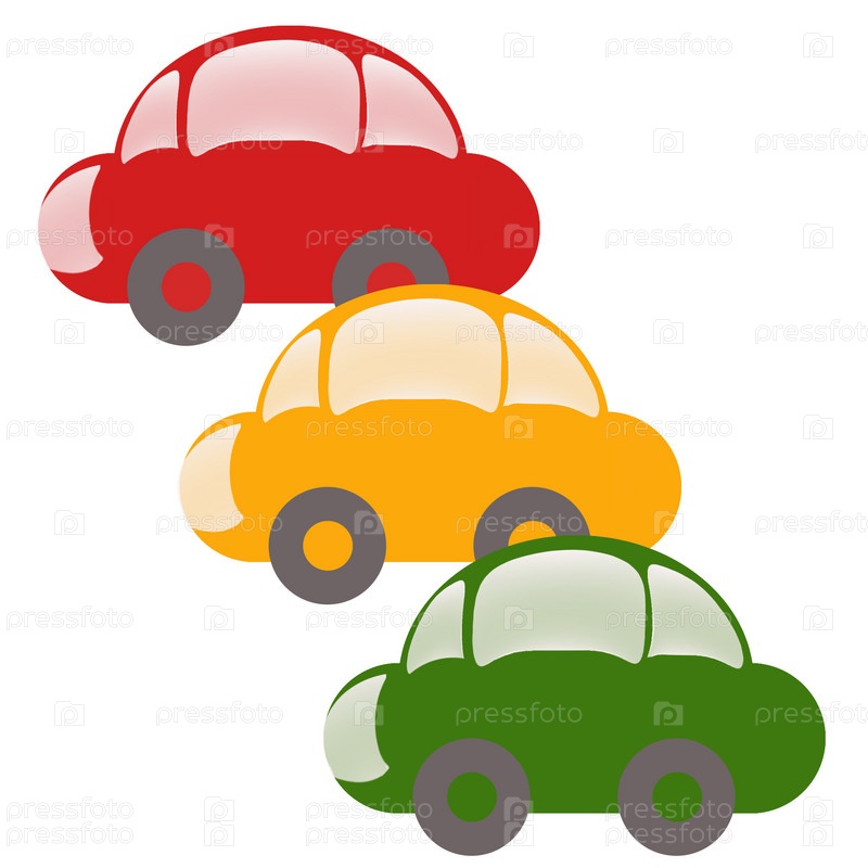 Три машинки в виде светофора на белом фоне
