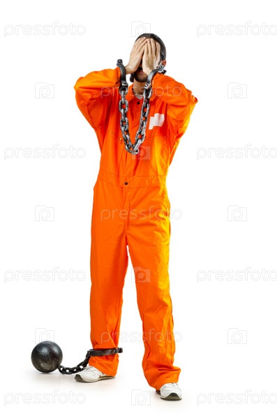Осужденный в наручниках на белом