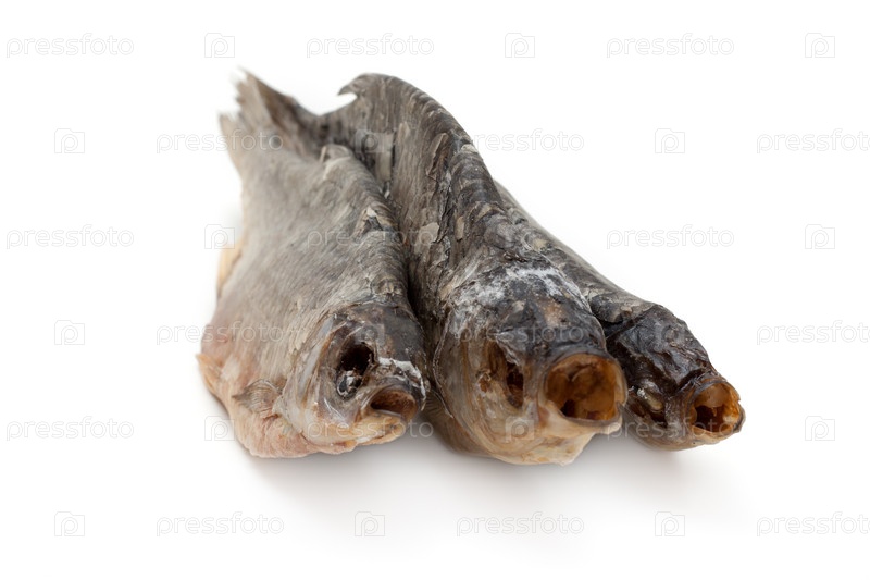 Сушеные рыбы, гребешки изолированные на белом фоне