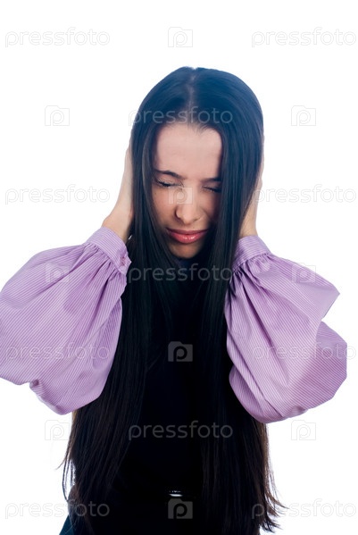Портрет молодой девушки на белом фоне