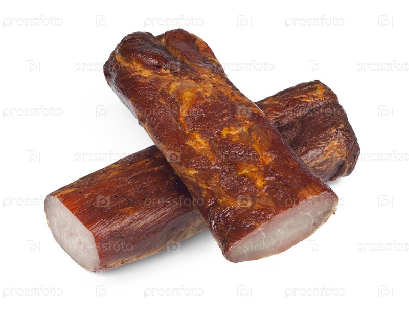 Копченое мясо на белом фоне