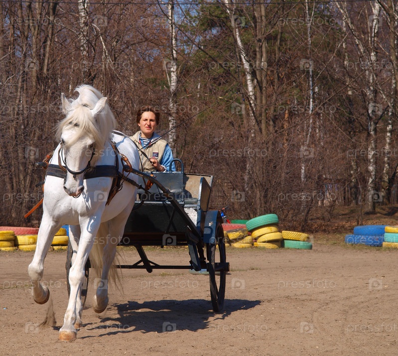 Двуколка с белой лошадью