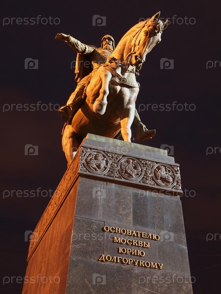 Памятник Юрию Долгорукому в Москве ночью