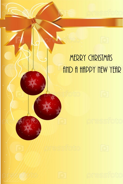 Праздничный фон с ёлочными шарами и надписью 'Веселые Рождества и Счастливый Новый год'