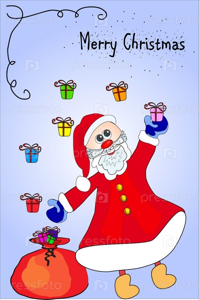Праздничный фон с Дедом Морозом и надписью 'Веселые Рождества'