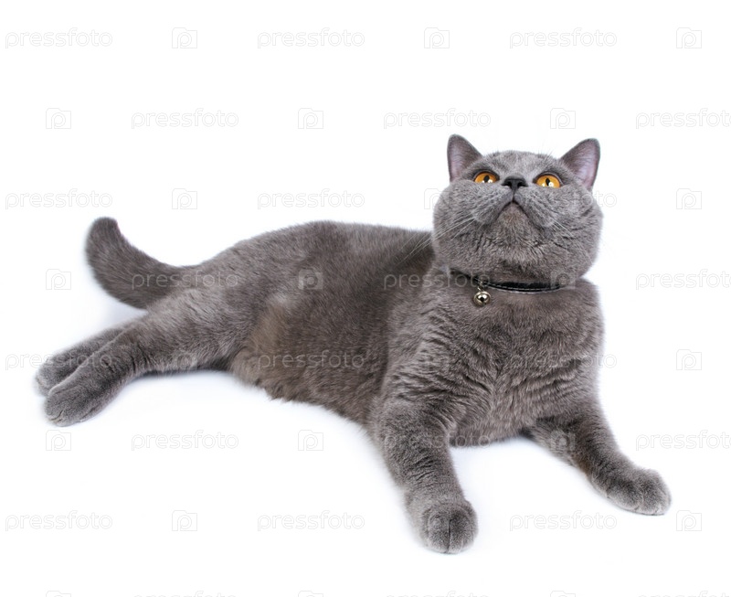 Британский голубой кот на белом фоне