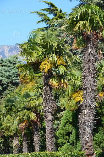 Тропический сад с высокими пальмами