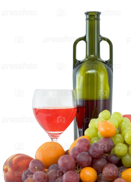 Натюрморт с декантером, кубком и виноградом на фоне коврика