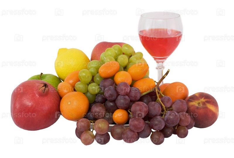 Натюрморт с декантером, кубком и виноградом на фоне коврика