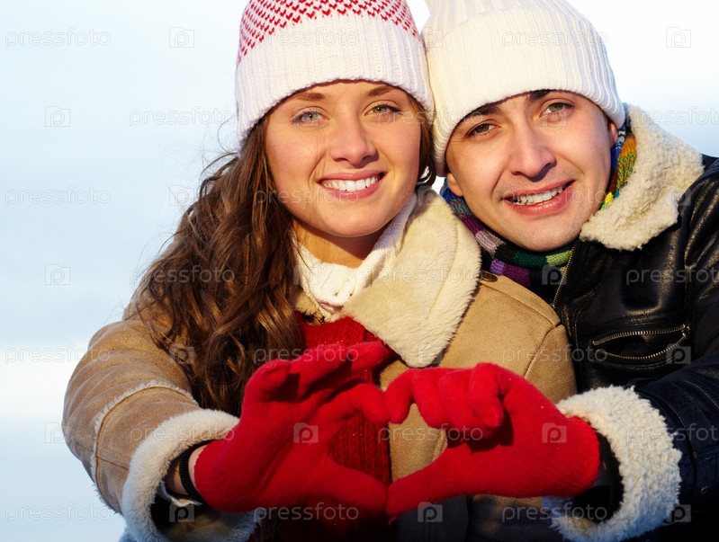 Влюбленная пара зимой на природе