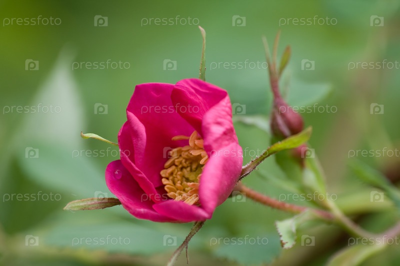 Близкий снимок цветка собачьей розы, готового к открытию